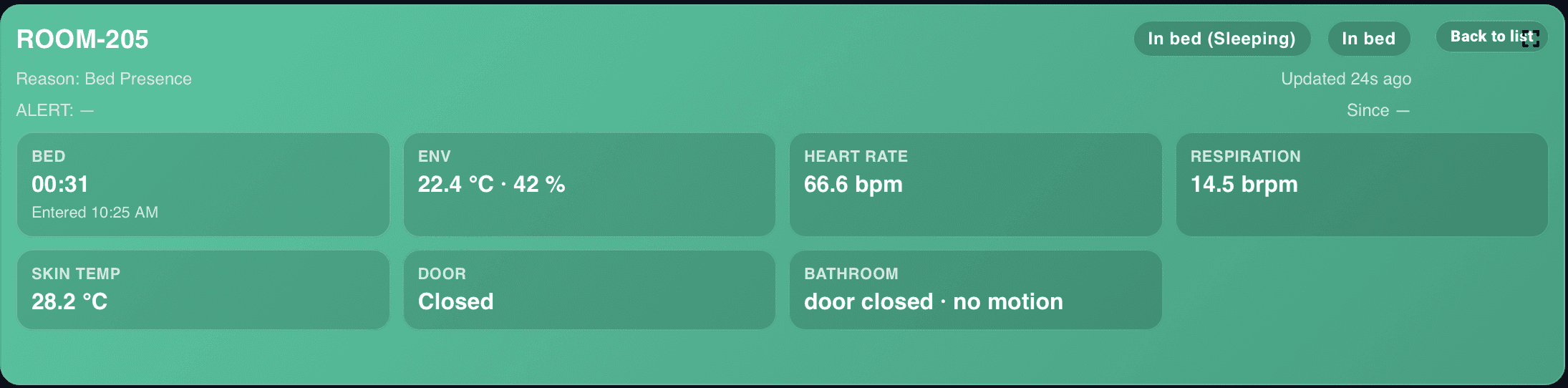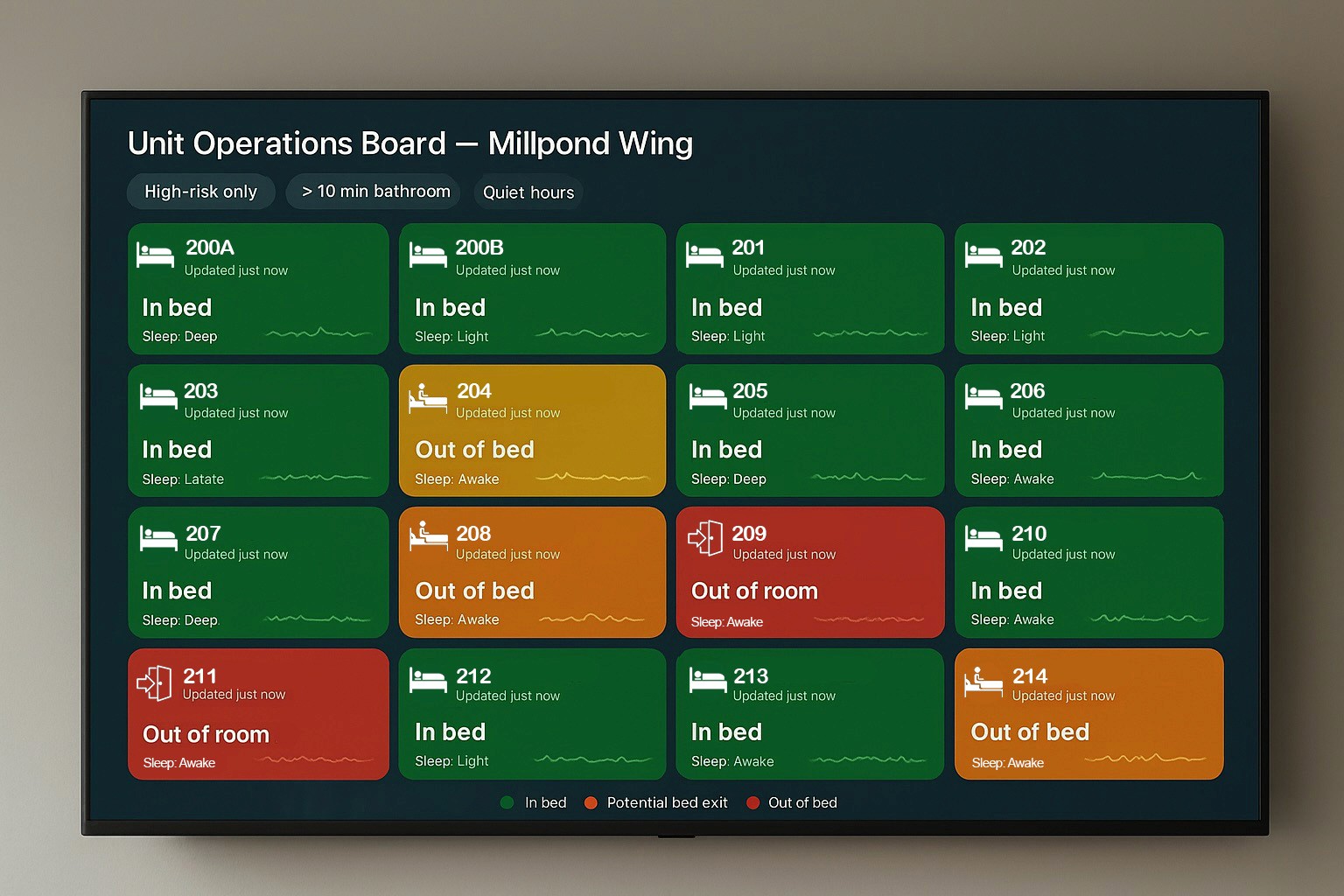 SmartRoom combines multiple privacy-first sensing technologies to help staff understand what is happening in the room, surface meaningful changes sooner, and respond with clearer context.